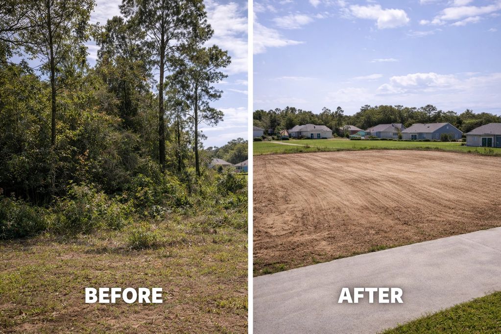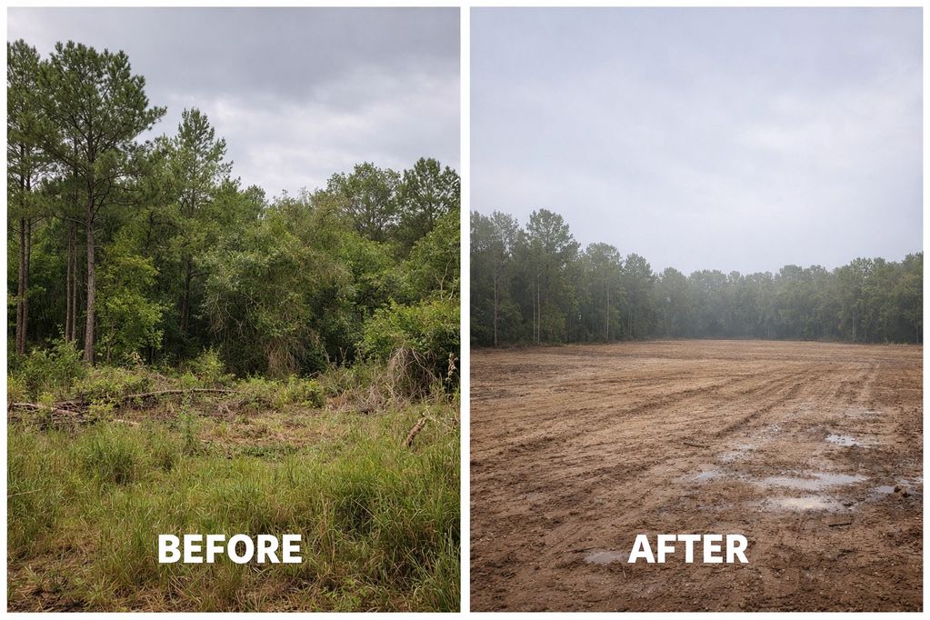 From dense woods to a build-ready site, this transformation reflects full clearing, grubbing, and grading services.